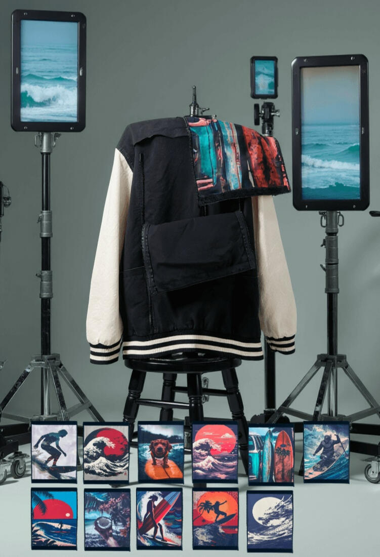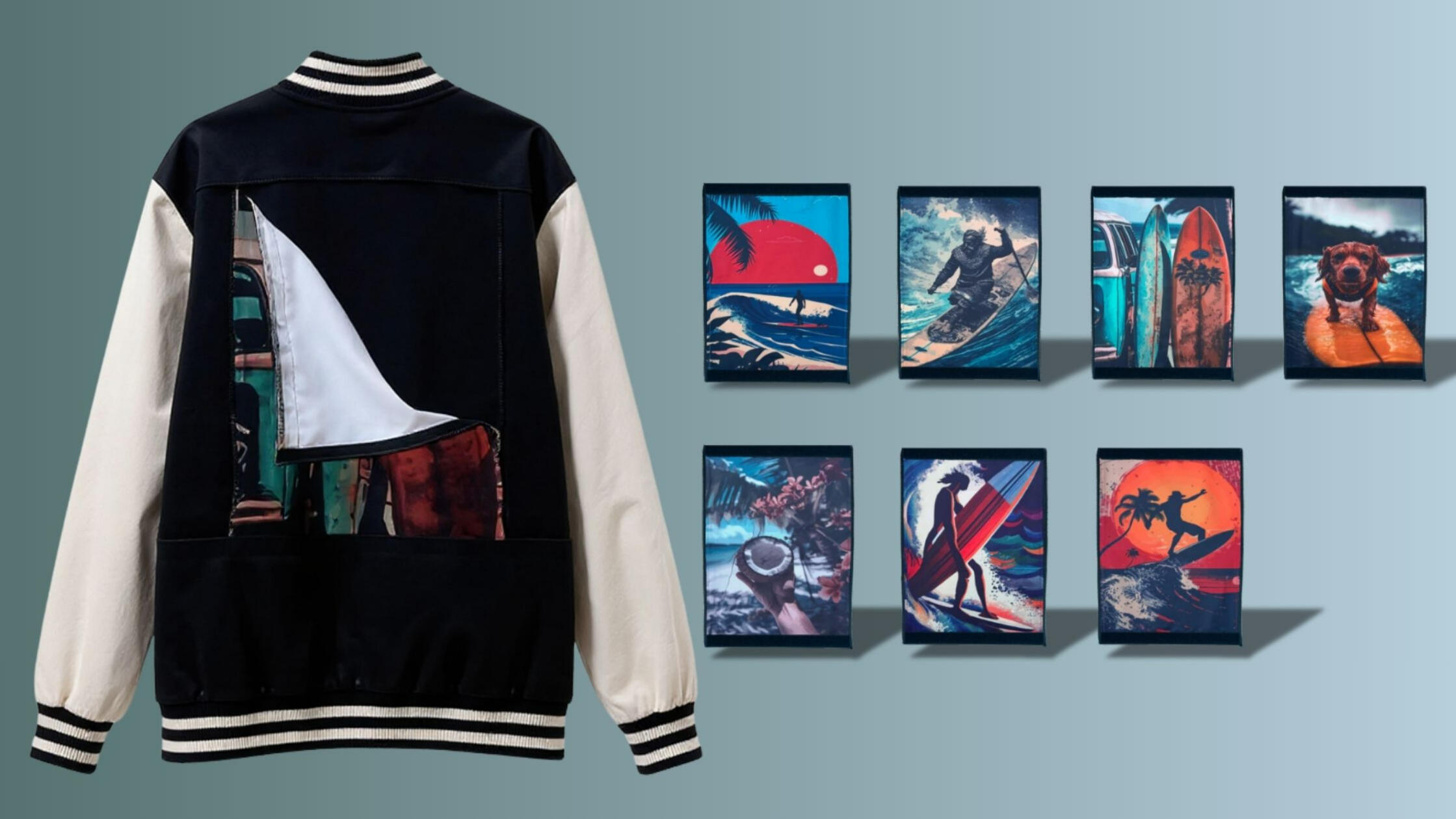 Eine hochwertige, wandelbare Jacke mit austauschbaren Designs. Inspiriert von Strand, Surfen und der Sonne.